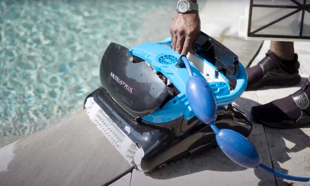 The Dolphin Nautilus CC Plus makes pool maintenance a breeze. Its top-loading filter ensures quick access and effortless cleaning for a seamless pool care experience.